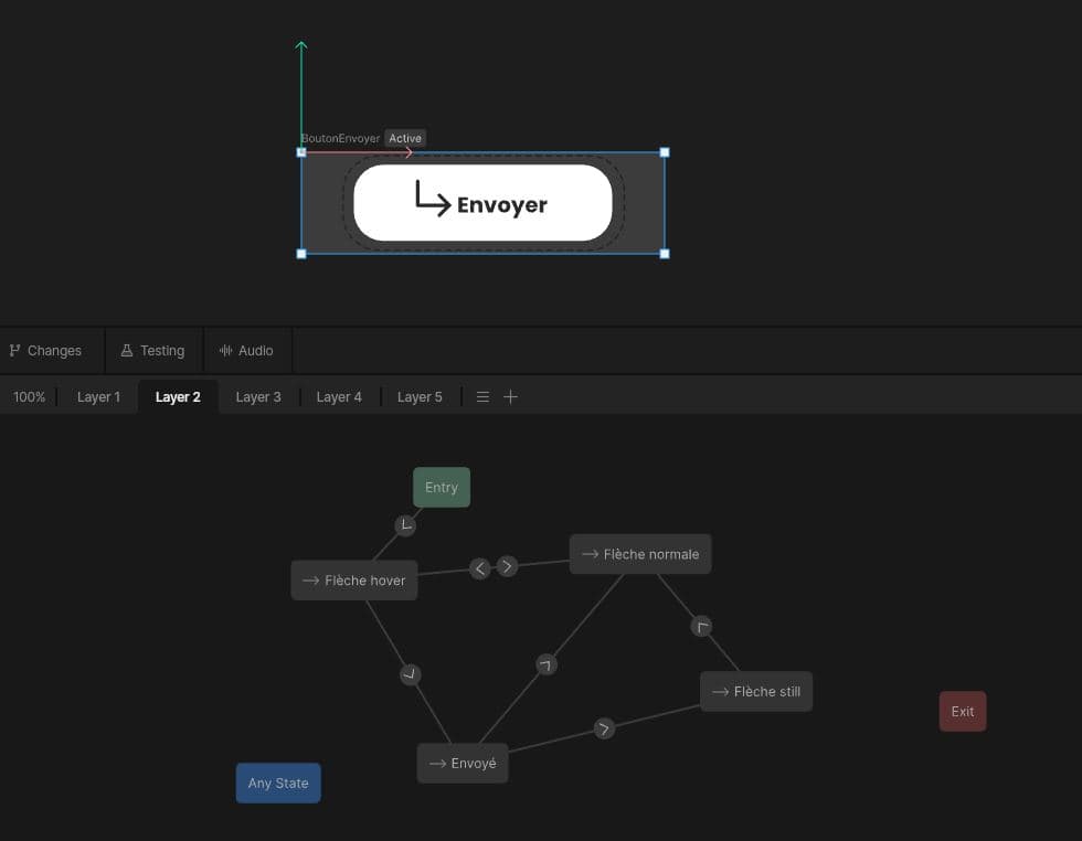 Bouton “Envoyer” — animations avec états et transitions.
